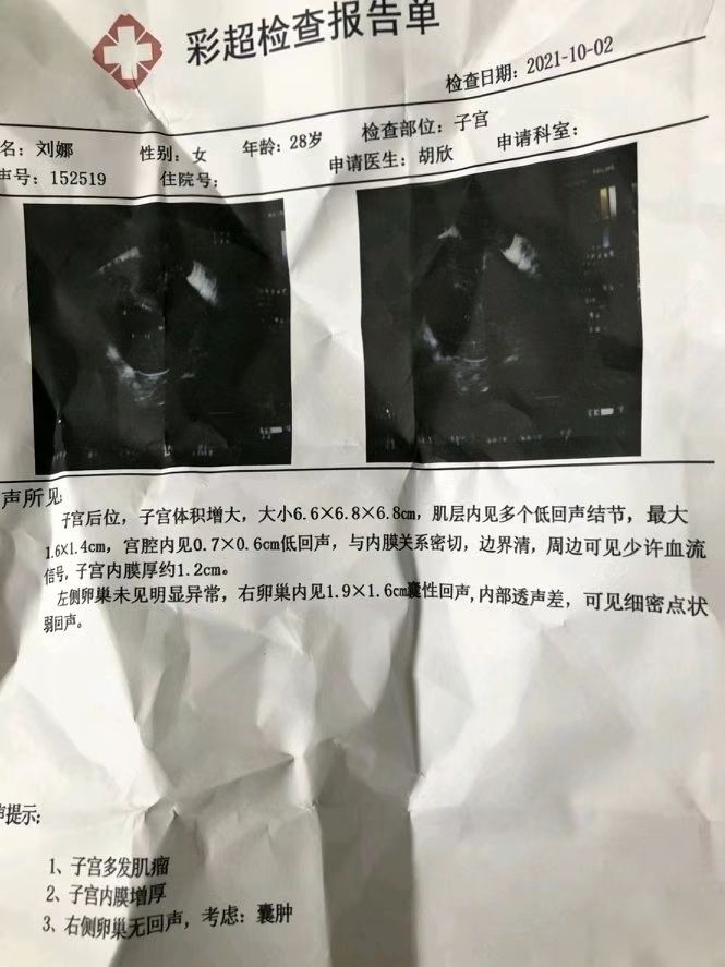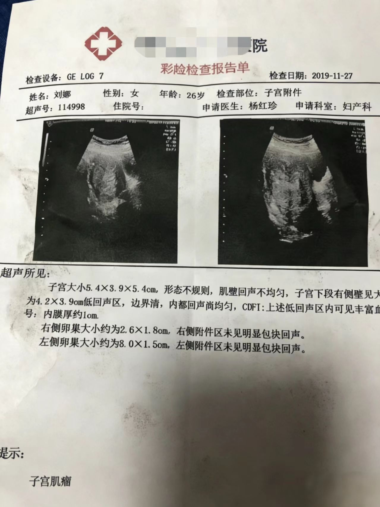 我叫刘娜,今年32岁,从大学毕业出来工作,熬了六七年,终于当上部门主管,长期的加班加点,压力也大,前两年身体感觉不行了,每个月来月经不规律不说还痛经,腰酸背痛,各种的不舒服。刚好家里催着我要孩子,年龄也不小了,去医院检查肌瘤4.2cm,医生说“要想生孩子必须手术,如果不及早手术别说要孩子,子宫都不一定能保住,手术了两年后就能怀孕“,看着这个检查结果再加上医生的话,我当时非常害怕,跟老公商量后决定手术,